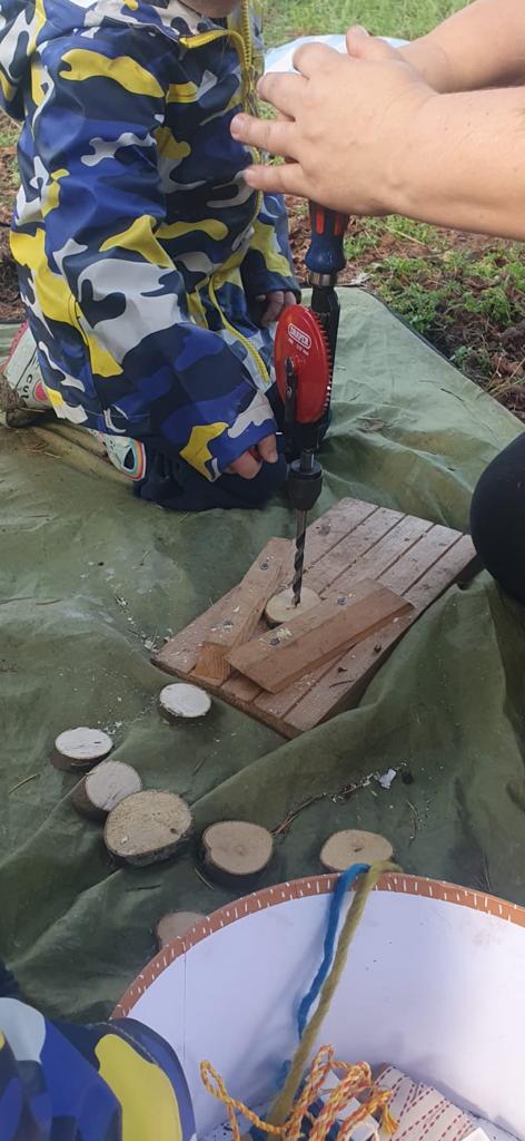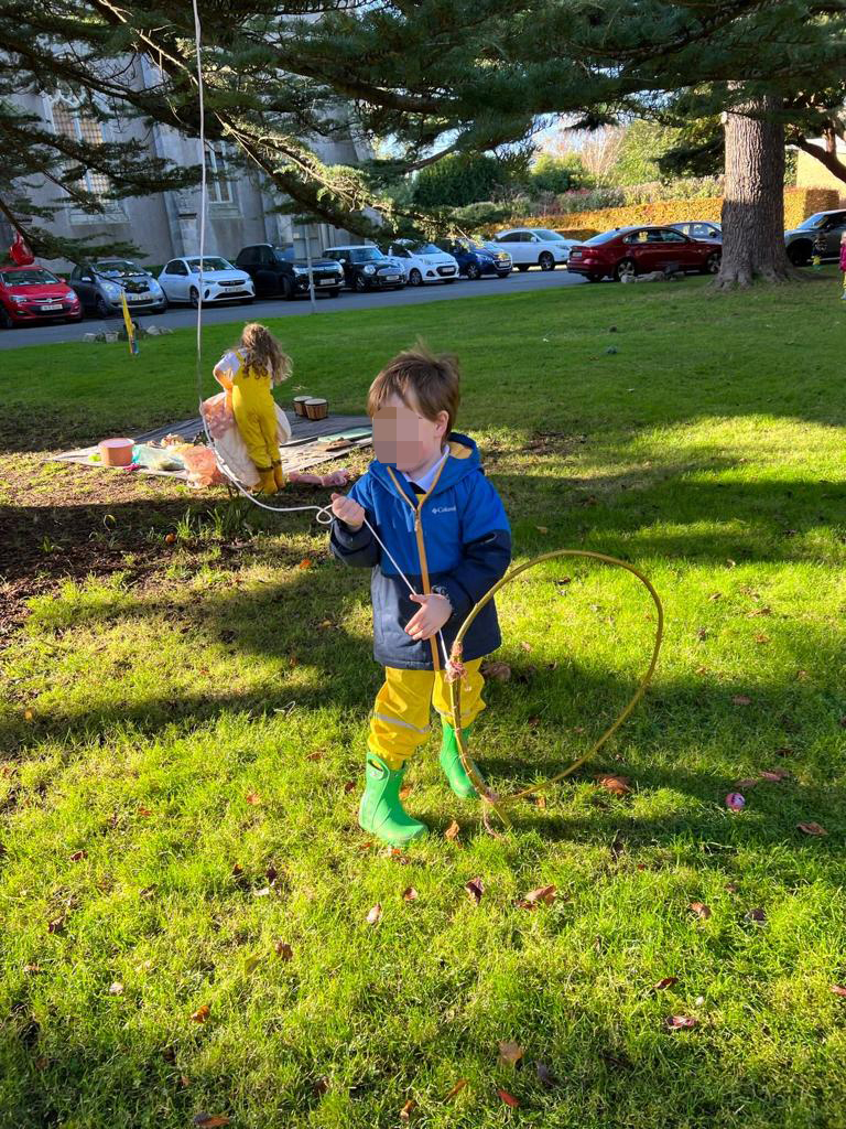 every week we have our very own Forest School teacher from Wild By Nature in Cabinteely Park who comes to the school and works with the children. They are thought many things including trusting themselves, interpersonal negotiation and personal autonomy